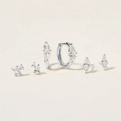 | Resaltar: | S925 Los pendientes de zircón de plata,Tres piezas de aranceles de zircón de plata,Aretes de aro de zirconia cúbica de corte de pera |